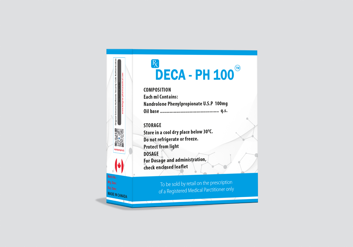 DECA – PH 100 ™ Nandrolone Phenylpropionate 100mg/ml is a fast-acting injectable anabolic steroid that is derived from Nandrolone. Known for its ability to promote lean muscle growth and enhance strength without significant water retention, Nandrolone Phenylpropionate is a preferred choice among bodybuilders and athletes looking to maintain a lean, defined physique. The phenylpropionate ester provides a shorter half-life compared to other nandrolone esters, which allows for quicker results and more precise control over hormone levels. Nandrolone Phenylpropionate works by enhancing protein synthesis and nitrogen retention in the muscles, leading to significant muscle growth and improved recovery times. It also increases red blood cell production, improving oxygen delivery to muscles during intense workouts. The phenylpropionate ester ensures a quicker release into the bloodstream, providing rapid anabolic effects, which is ideal for those seeking fast results within shorter cycles. Box – 10 Ampules of 1ml PILs – Patient Information Leaflet.