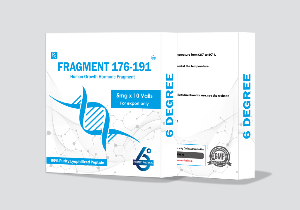 Fragment 176-191 is a synthetic peptide derived from the C-terminal portion of human growth hormone (HGH). It is designed specifically to promote fat loss without significantly affecting muscle growth or blood sugar levels. This fragment works by increasing lipolysis (fat breakdown) and reducing lipogenesis (fat storage). Unlike full HGH, it has minimal impact on IGF-1 production. Fragment 176-191 is typically administered by subcutaneous injection, often daily. It is mainly used in research and body-recomposition communities. The peptide is not approved for medical use, and long-term safety data in humans are limited.