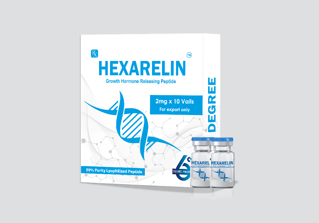 Hexarelin is a potent synthetic growth hormone-releasing peptide (GHRP) that stimulates the pituitary gland to release growth hormone. It works by activating the ghrelin receptor, producing strong and rapid GH pulses. Compared with other GHRPs, hexarelin is considered more powerful but may cause quicker receptor desensitization with prolonged use. It has been studied for effects on muscle growth, recovery, bone density, and cardiac tissue. Common side effects include increased appetite, water retention, and possible prolactin or cortisol elevation. Hexarelin is usually administered by subcutaneous injection. It is not approved for medical use and remains a research compound.