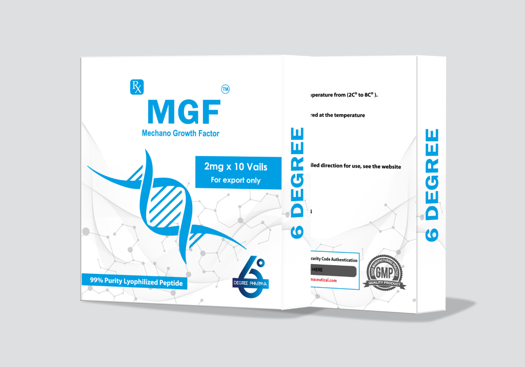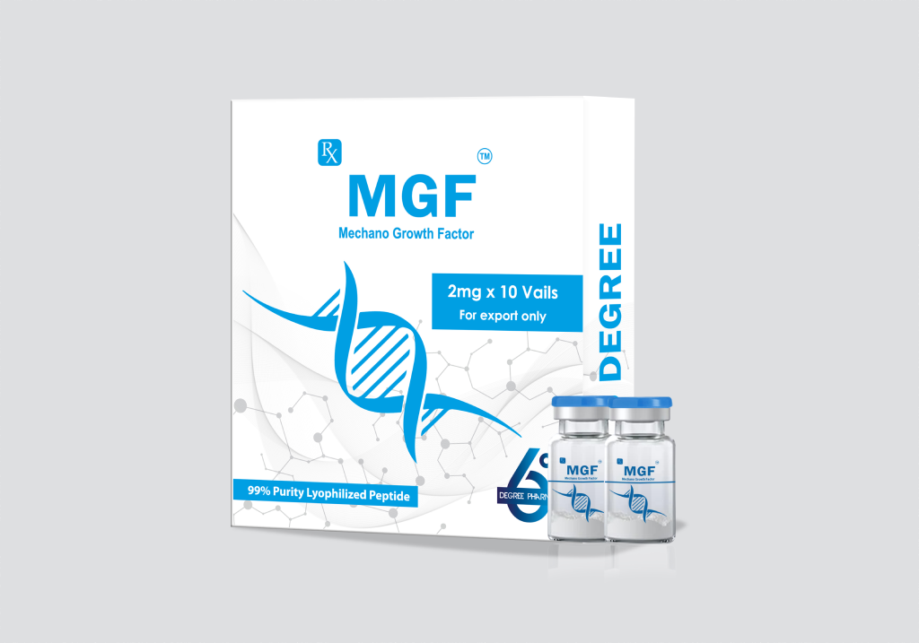 MGF (Mechano Growth Factor) is a splice variant of IGF-1 that is produced naturally in muscle tissue in response to mechanical stress such as resistance training. Its main role is to activate muscle satellite cells, which help repair damaged muscle fibers and support muscle growth. Unlike systemic IGF-1, MGF acts mostly locally at the muscle where it is released. It has a very short half-life, meaning its effects are brief and tightly regulated. Synthetic MGF is used experimentally in research and bodybuilding contexts to enhance recovery. MGF is not approved for medical use and has limited human clinical evidence. Long-term safety and optimal dosing remain unclear