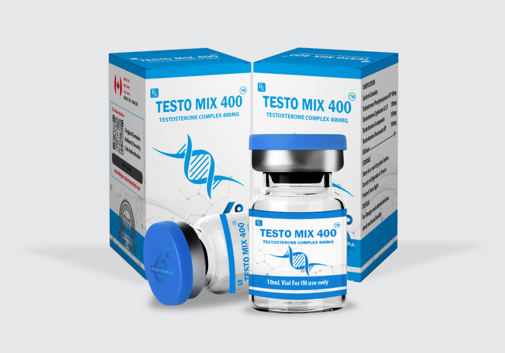 TESTO MIX 400™ is used to replace testosterone in the body to treat various male sexual problems, for example: After castration or a similar problem called eunuchoidism, decreased sex drive, Impotence caused by hormonal disorders, Infertility caused by low sperm count, Bone loss caused by low hormone levels, looking to enhance your physical performance and muscle gains? TESTO MIX offering you a powerful testosterone mix that has been favored by athletes and bodybuilders worldwide. a blend of four different testosterone esters, provides both immediate and long-lasting effects, making it a versatile choice for various cycles. Testosterone MIX 400mg/ml box contains: VAIL – 10 ml PILs Patient Information Leaflet