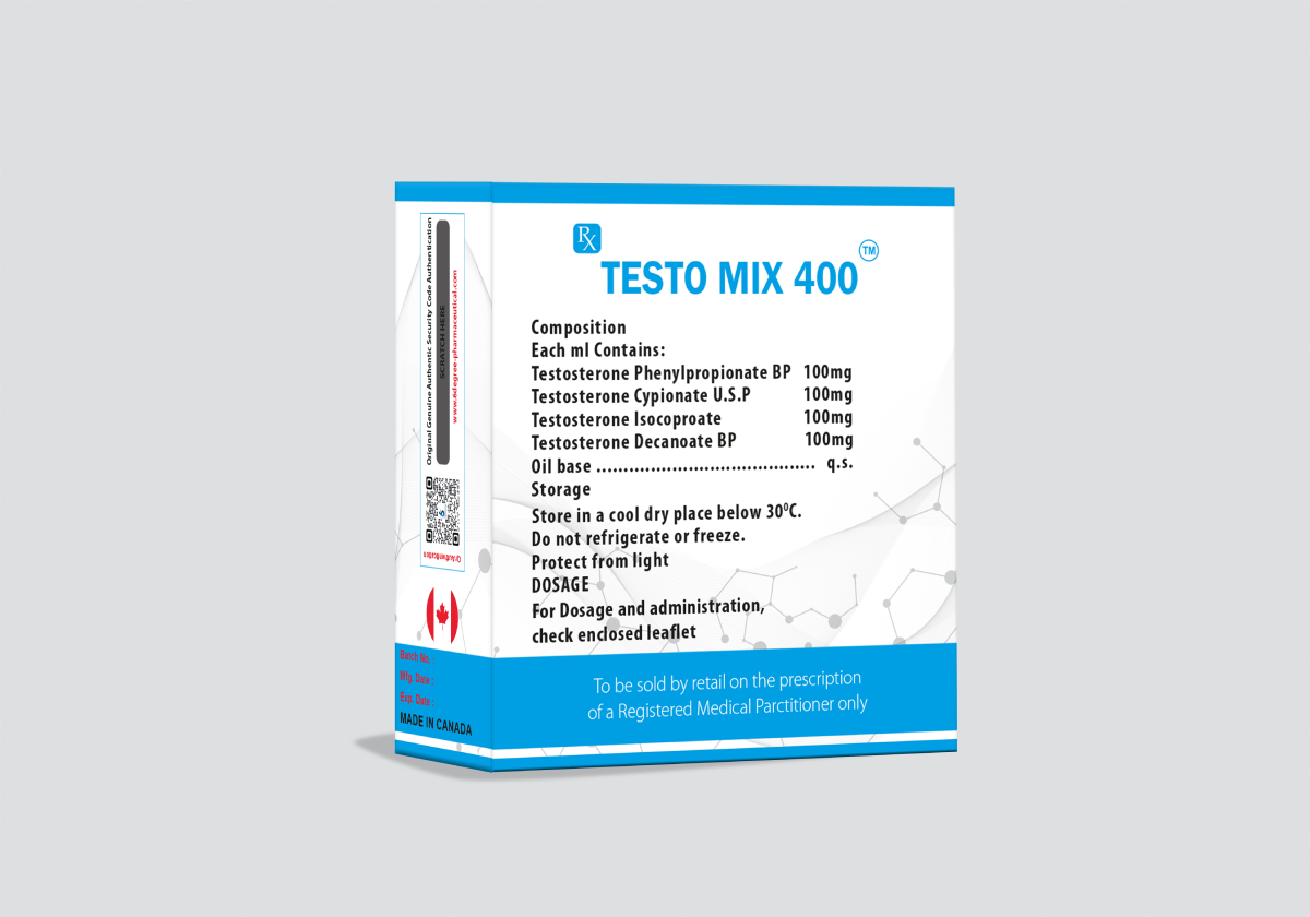 TESTO MIX 400™ is used to replace testosterone in the body to treat various male sexual problems, for example: After castration or a similar problem called eunuchoidism, decreased sex drive, Impotence caused by hormonal disorders, Infertility caused by low sperm count, Bone loss caused by low hormone levels, looking to enhance your physical performance and muscle gains? TESTO MIX offering you a powerful testosterone mix that has been favored by athletes and bodybuilders worldwide. a blend of four different testosterone esters, provides both immediate and long-lasting effects, making it a versatile choice for various cycles. Testosterone MIX 400mg/ml Each box contains: Box – 10 Ampules of 1ml PILs Patient Information Leaflet.
